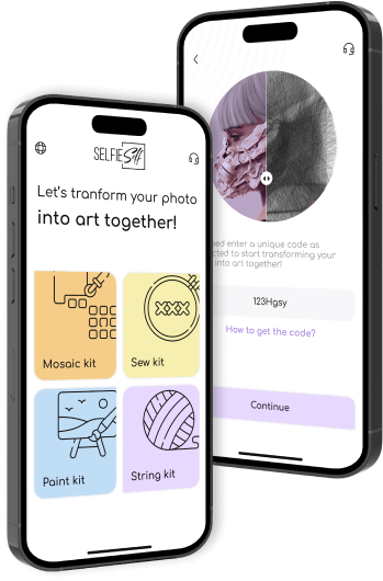 SelfieSelf transforms personal photos into custom art instructions, working with pre-purchased physical art kits. Users input a craft set’s code into the app, which then provides tailored guidance based on the kit’s contents, covering styles like RingString, Paint by Number, Mosaics, and Embroidery.
