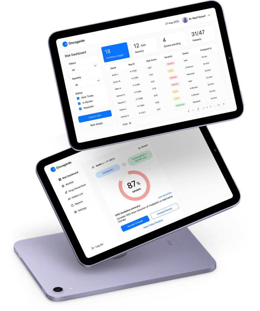 Oncogarde is an AI-driven healthcare app designed for oncology clinics, combining data from EHRs, labs, and insurers to detect dangerous drug and genetic risks instantly. Built using the latest AI development practices, it delivers real-time alerts and plain-language explanations—all in one clean dashboard.