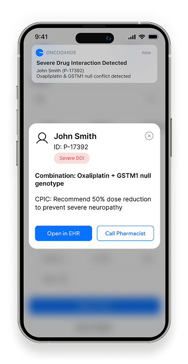 Pharmacists spend up to 45 minutes per oncology patient, checking as many as 11 drugs across scattered EHR, PGx, and interaction sources. This manual process increases the risk of missing dangerous drug or gene conflicts.