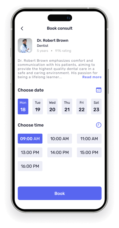 Hospital booking app that simplifies scheduling medical appointments and managing healthcare needs. It provides a user-friendly platform to search for healthcare providers, book appointments, and store medical records.